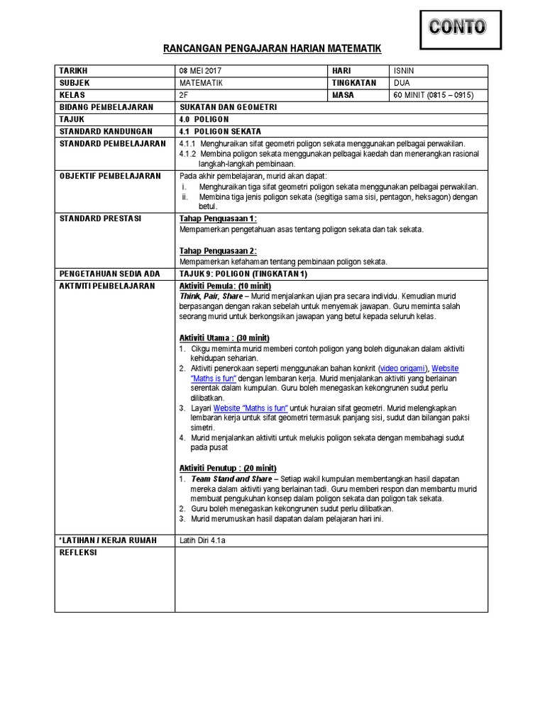 Rancangan Pengajaran Harian Matematik Tingkatan 1 Pdf